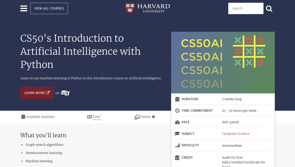 Curso online da tradicional universidade norte-americana ensina fundamentos de IA com Python e pode ser acessado gratuitamente por estudantes de todo o mundo