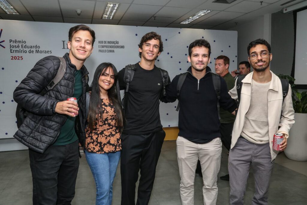 Grupo de fundadores e estudantes vinculados à Passabot em evento do Hub de Inovação e Empreendedorismo do Insper. Foto: Divulgação